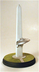 The monument is 4 1/2" tall and the saucer has a diameter of 1 1/8"