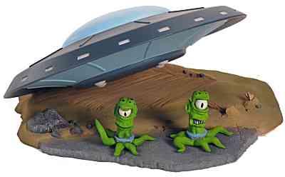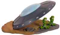 5.5 inch diameter saucer. 5 piece kit includes base and 2 aliens!